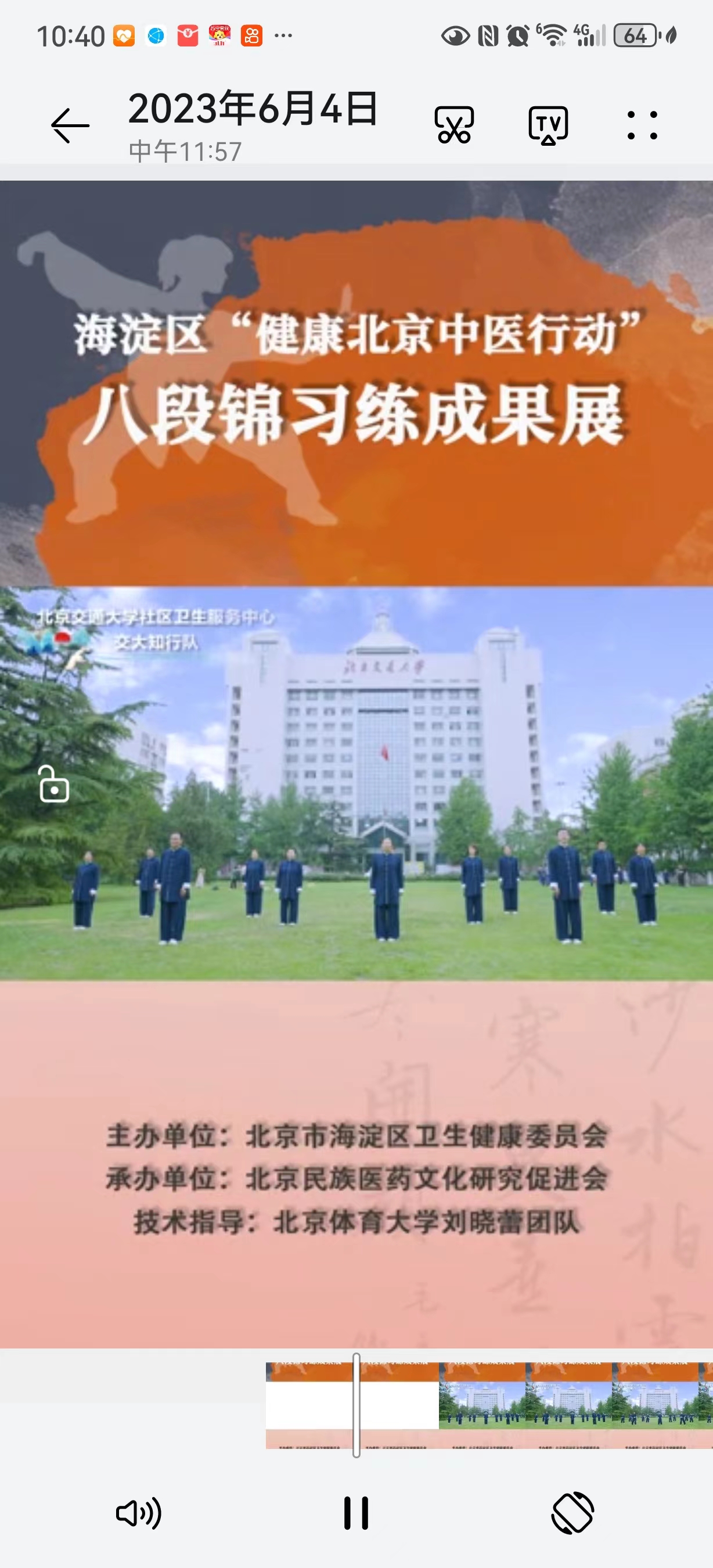八段锦是中医先辈用形体动作结合呼吸吐纳之法所创的健身功法,是具有悠久历史的中医传统文化。八段锦可以充分舒展、拉伸筋骨,疏通经络,可对五官、头颈、躯干、四肢、腰腹全身的各个部位进行锻炼,并且与呼吸相配合宣畅气血,疏通经络,起到防病、治病、炼筋、炼骨的功能, 同时对五脏起到升发阳气、调理脏腑功能、平衡阴阳的作用。通过推动八段锦在老太阳集团tcy8722网站的推广普及,掀起了中医导引功法练习热潮。在此基础上,选派精英代表医院录制视频参加了海淀区医疗机构八段锦培训推广及习练成果展示活动,荣获三等奖。