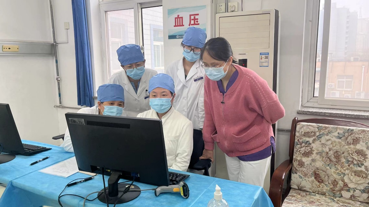 物资装备就绪后,参与血压测量的口腔科和精防科的医护人员在邰婉婷的帮助下,对体检录入和统计工作进行了实操培训。根据院办发放的体检系统权限账号和密码,每人登录进入体检系统,忘记密码的工作人员请邰婉婷对密码进行重置并保存,一一熟悉分科检查选项的扫码和录入流程,并在邰婉婷的指导下,学习了在医生诊台工作量统计的选项中,完成当日工作量统计。