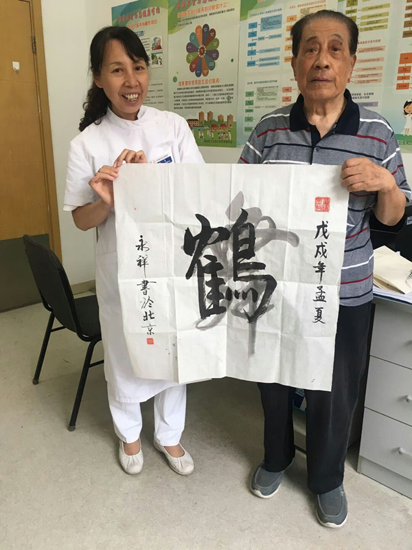如今的小屋,每天人来人往,欢声笑语,如同过年一般。虽然天气已进入炎热的夏天,但是仍然没有阻挡社区居民来我院签约家医服务的热情。已94岁高龄的孙老师,两周前在我院签约了家医服务,当天就在一楼挂号室预约了北大人民医院的专家号,从此以后,他就可以免去让儿女们再到大医院排队挂号的辛苦。为了感谢交大医院,2018年7月25日他专程送来了亲手撰写的书法作品。