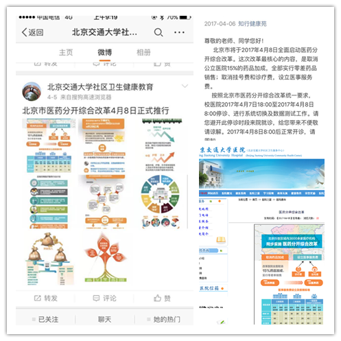 医院网站信息报送,相关政策解读、培训等与医改相关新闻皆发布于此。医院官方微博、官方微信以图文形式,简介明确的解读政策。医院注重用职工和群众听得懂、记得住的语言,通过措施办法讲清楚,夯实深化医改的民意基础,营造健康积极地舆论氛围。