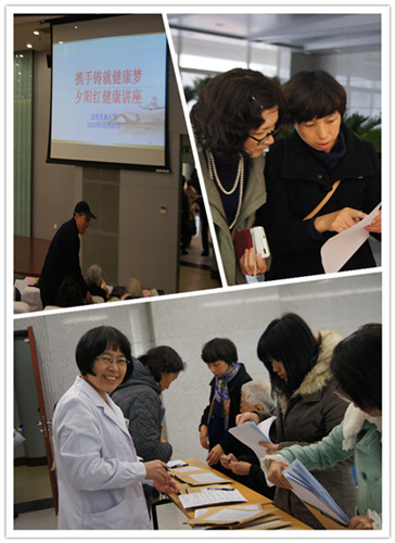 此次健康讲座的主题为“携手铸就健康梦”,是2014年敬老月活动的后期工作延伸。在前期完成离退休老师的颈动脉超声和中医体质辨识的检查后,老太阳集团tcy8722网站举办了关于颈动脉硬化的健康讲座。这次活动是为了满足老师们对体质辨识知识了解的需求举办,中医科张秀娟主任统筹安排,将每一位离退休老师的体质辨识结果按照检查日期整齐地收集在袋子里,为到场的老师发放。针对每位老师的结果发放相应体质的宣传彩页和生活指导宣传单。