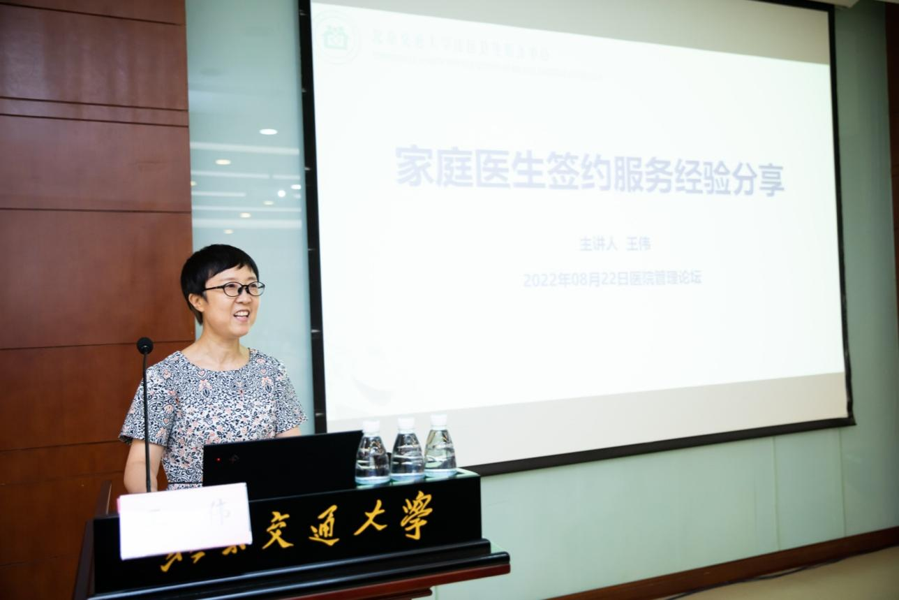 内科主任王伟做了题为《家医医生签约服务经验分享》的主题报告,从家庭医生签约服务的概念、家医团队工作介绍、疫情期间的我们、家医签约服务的工作体会四个方面,介绍了交大医院的家庭医生签约服务项目工作和家医团队管理工作经验。