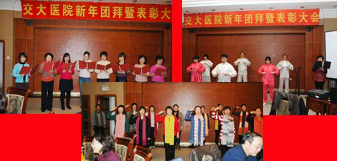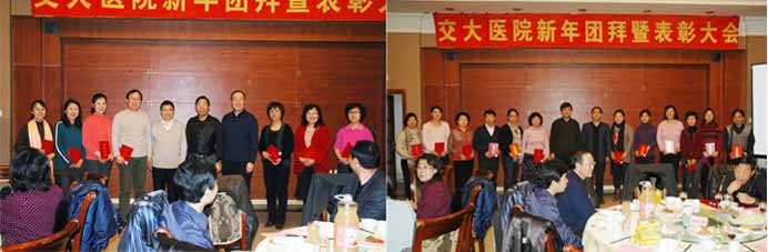 2011年12月29日晚,太阳网集团tcy8722医院2012新年团拜暨表彰会在红果园二楼餐厅举行。校党委高福廷副书记、陈峰副校长、张星臣副校长、郑广天校长助理、吴强校长助理,部分院系和职能部处的领导莅临现场,老太阳集团tcy8722网站班子成员和离退休同志代表应邀出席,与医务人员一起喜迎新年。