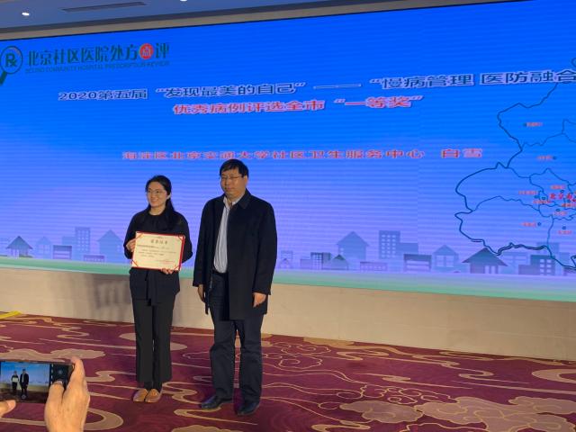 在2021年3月30日召开的北京市社区处方点评安全用药 2020 工作总结和 2021工作部署会上,太阳网集团tcy8722社区卫生服务中心的白雪医生接过了由北京市社管中心主任张向东颁发的第五届“发现最美的自己”社区慢病管理优秀病例征集评选一等奖证书!