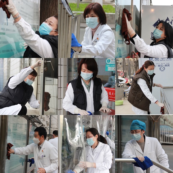 党员们满怀热情投入义务劳动,大家分工合作,有的擦拭医院门诊的闸机、门帘、玻璃门,有的擦洗医院周边宣传橱窗、标牌,有的清洁护栏、楼梯扶手,有的捡拾垃圾杂物,经过一个多小时的劳动,橱窗、扶手、标牌擦拭干净,医院周边变得整洁清新。看到大家的劳动成果,党员们感到既充实又舒心。