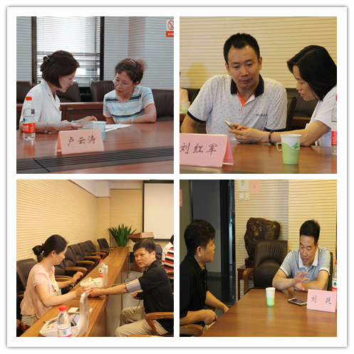 2015年职工健康体检已经结束,老师们陆续拿到了体检报告,面对报告上高高低低的指标许多老师很困惑,该如何解读这些指标,异常的指标需要进一步做哪些检查,如何通过体检报告了解个体的整体健康水平,生活方式上该如何注意,如此等等。在土建学院工会积极沟通下,老太阳集团tcy8722网站第五团队了解到了老师们的这些需求并积极响应,于7月15日下午,在团队长刘红军副院长的带领下,一行五人深入土建学院进行体检报告现场咨询。