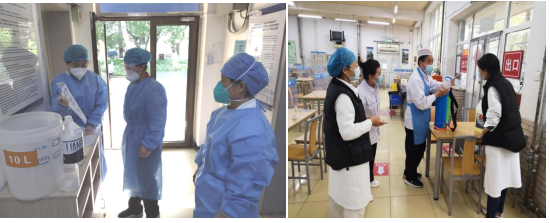 疫情期间,保健科对全校宿舍、楼宇、食堂、隔离点、家属区、超市、菜市场等人群聚集地点进行反复消毒指导工作共 70余次。今年寒假以来,为了保障冬奥会志愿者等的环境安全,保健科进一步加大了检查和指导的力度,上半年就开展消毒指导40次,有效地预防新冠肺炎在学校的发生和蔓延。