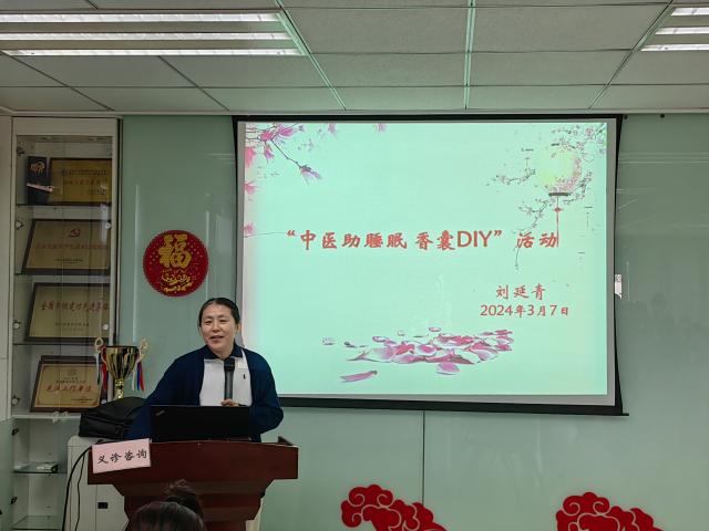 2024年3月7日,老太阳集团tcy8722网站工会、中医科、药剂科联合组织举办了专场中医药宣传服务活动。活动围绕“弘扬中医药传统文化,服务保障社区居民身体健康”的主题开展,针对当前多见的失眠问题,通过健康讲座、义诊咨询、发放自制健康教育折页、香囊DIY等形式,为40多位女性居民解疑释惑、提供治疗建议,特别是精选一批优质中药材,辅导带领大家亲自动手制作助眠香囊,使大家进一步了解了中医药原理和中医传统文化。
