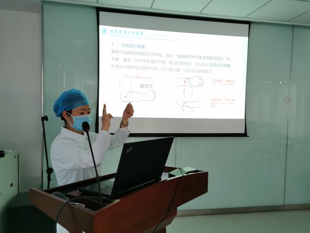 首先,护理部主管护师刘薛静主要从拔罐的定义、种类、作用、适应症、禁忌症、注意事项、体位选择 、选穴原则、操作步骤与要求9个方面做了详细介绍。讲解后,护理人员还进行了真人实际操作,为大家直观地演示每一个操作步骤和细节。为了加深印象和掌握操作技巧,各位老师更是积极练习,活动期间学习氛围浓厚,全体护理部人员展现出了强烈的学习兴趣和求知欲望。
