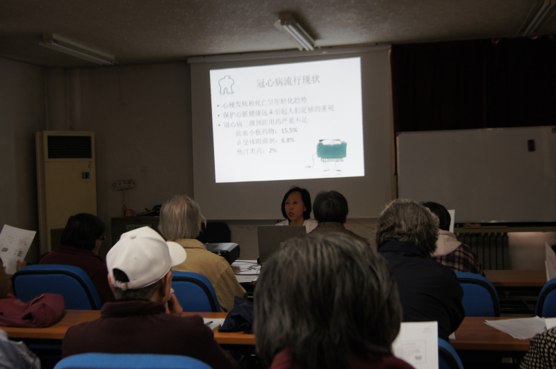 2013年4月17日下午2:30在老太阳集团tcy8722网站3层健康教育室举办了家庭保健员培训,老太阳集团tcy8722网站副主任医师孙伟娜为30余位家庭保健员及社区居民做《了解冠心病》健康科普知识讲座。