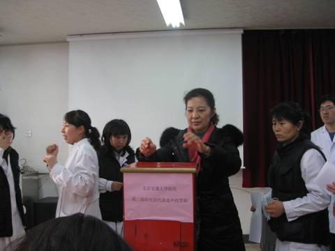 在校工会指导、院直属党支部领导下,我院职工代表大会换届选举全院职工大会于2011年12月27日在门诊楼三层会议室召开,75位职工参会。经与会职工无记名投票直接差额选举,25位职工当选医院第二届职工代表大会代表。代表构成充分考虑了科室覆盖面,5位非事业编制职工首次被选举为医院职代会代表。