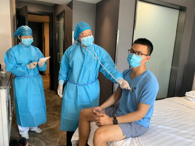 返校第二日即8月30日,即出现了发热的同学,老太阳集团tcy8722网站立即启动《返校学生发热应急管理流程》,详细询问流行病学史、复测体温、及时转诊到定点机构发热门诊,按照北京市要求,进行“3+1”检测(新冠核酸+新冠抗体+血常规+肺部CT),排除新冠后将学生收入已经安置好的发热观察点,老太阳集团tcy8722网站医务人员24小时进行健康监测和观察。同时,对发热同学的密切接触者也采取就地隔离的措施,实施健康观察。