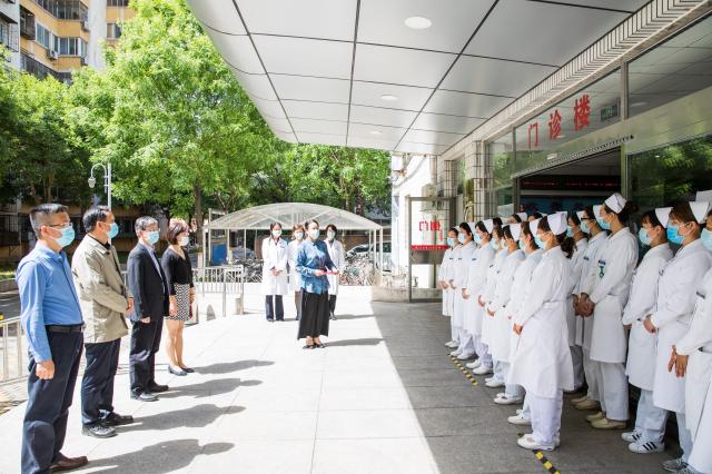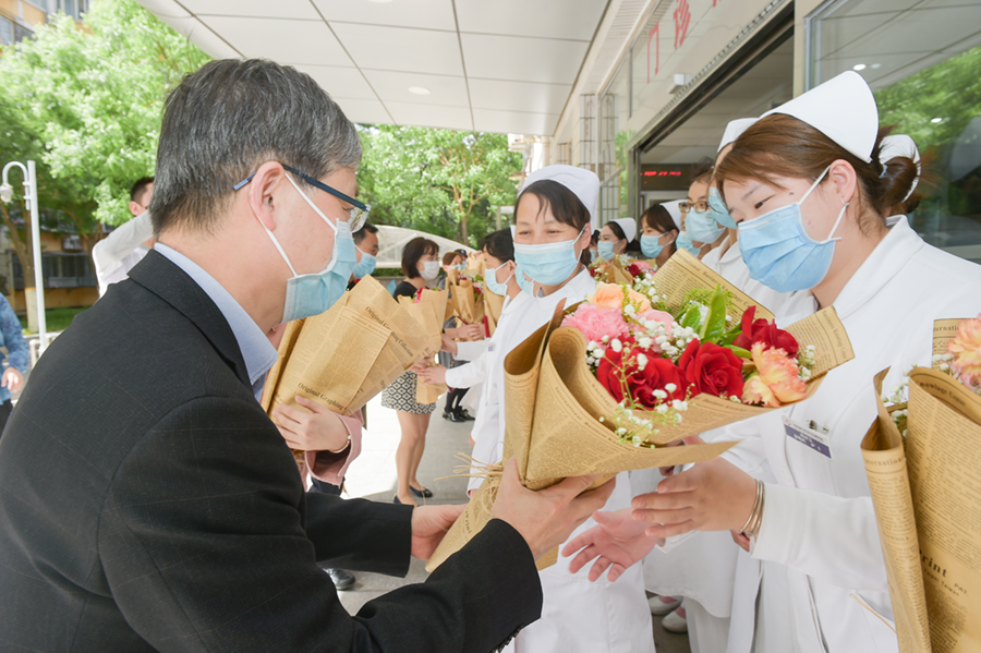 为进一步关心爱护护士队伍,弘扬南丁格尔精神,营造尊重护士、爱护护士的良好氛围,2020年5月12日,太阳网集团tcy87222020年“致敬护士队伍,携手战胜疫情”5·12国际护士节纪念活动在老太阳集团tcy8722网站门诊楼外召开。校党委书记黄泰岩,校长助理郑广天,校工会、学校办相关负责人与老太阳集团tcy8722网站班子成员、院工会委员一道,和护理工作者共同纪念这个节日。