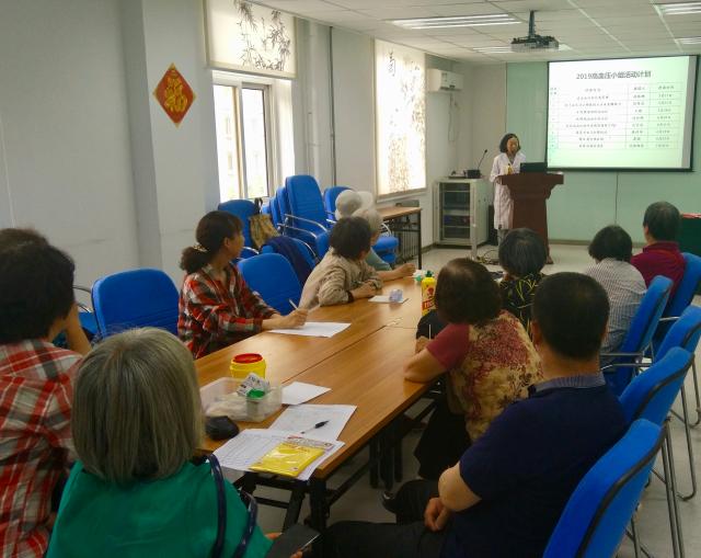 为了更好地落实海淀区2019年高血压患者自我管理工作要求,高血压小组组长孙伟娜副主任医师首先向大家介绍了小组活动的课程安排,一个个题目非常实用,极大地吸引着组员们前来参加活动。为了帮助组员更好的理解、参与小组活动,孙伟娜医生指出,本年度组织高血压小组活动,将一如既往地遵照《高血压自我管理手册》内容及要求,探索医患合作—患者互助—自我管理的慢病管理模式。每次小组活动将安排1个小时,采取围坐的形式。每次活动前30分钟听讲座,后30分钟进行互动讨论。为了取得更好的效果,她特别强调,每次活动互动的环节很重要,希望组员们积极发言,提出建议,反馈遇到的问题。 她再次说明,要想真正取得自我管理的成效,离不开“目标设定、行动计划的执行、解决问题”三大关键性环节。希望每一位组员在认真学习的同时,始终围绕这一主线,借助医生、同伴的帮助,发挥自己的聪明才智,争取真正获益。