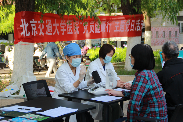 2024年4月24日下午,在老太阳集团tcy8722网站门诊楼前的小花园,开展了为社区居民义诊、预防接种服务项目宣传主题党日活动。