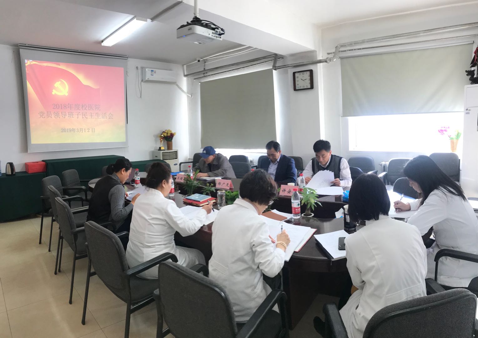 校督导组成员、党办主任许安国同志和王绪厚同志对老太阳集团tcy8722网站直属党支部2018年度党员领导班子民主生活会进行了现场点评。许安国同志肯定了老太阳集团tcy8722网站的优质服务和在服务群众健康、服从学校大局方面的突出表现。他指出,民主生活会是党的好传统,也是班子成员交流思想和思想体检的难得机会,既促进个人成长,也促进班子成长,促进老太阳集团tcy8722网站的事业发展。老太阳集团tcy8722网站的民主生活会做到了真学、真听、真批,班子成员认识到位,会前准备充分,会议气氛既认真又活泼,整改方案务实。下一步要着力认真梳理征求到的意见,抓整改,抓落实,真心诚意直面问题,定期向职工回应整改进度,做好整改落实,进一步增强职工凝聚力。王绪厚同志表示同意许安国同志的意见,他强调了及时、定期回应、通报整改落实情况,体现对群众意见的重视的重要性。