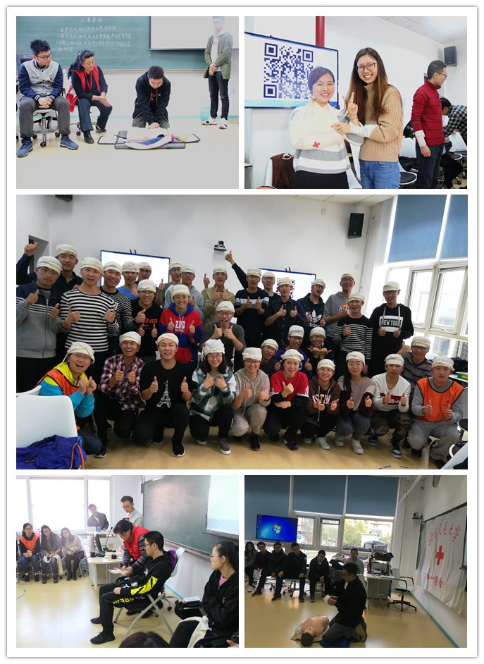 10月28日为实操课部分,学员分为10个小班,由海淀区红十字会的10位优秀师资给学员们演示了在抢救的黄金时间如何给伤者进行心肺复苏和急救现场创伤的止血与包扎方法。同学们在实际操练过程中,积极地进行分组练习,对伤员紧急脱险方法、呼救方法、正确处置伤员体位、伤员检查方法、现场心肺复苏单人操作、创伤急救四项(止血、包扎、骨折固定、搬运)等技能进行了演练。最后由实操老师对学员一一考核,实践和考核的过程,增加了学员的动手能力,使学员掌握了心肺复苏的要点和多种止血、包扎、固定的方法。