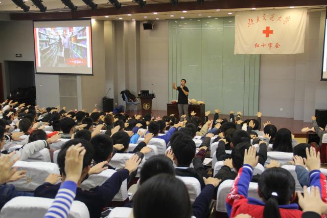 2018年10月27、28日,由海淀区红十字会和太阳网集团tcy8722红十字会主办的“架起绿色通道—爱的奉献、生命的承诺”主题急救知识技能培训在机械工程楼成功举办。最终共有313位师生(含17名老师和296名同学)参与培训并通过考核取证。