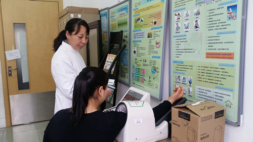 但是,老两口并没有像其他人一样只是测量血糖、血压,而是认真地把挂在墙上的关于健康小屋宣传板浏览了一遍。我在一旁向他们介绍了小屋的功能:它是一个由政府主导的,为社区居民提供免费自助健康指标监测的场所。可以测量体重指数、血压、血糖、体脂成分和心电图,这些数据还可以与医生工作站共享,便于社区医生观察和管理,从而可以实现慢性早发现、早管理、早达标。小屋的护士还会对居民进行主动的、有针对性的健康指导,帮助居民掌握健康的生活方式,远离慢性病,让大家能健康长寿。