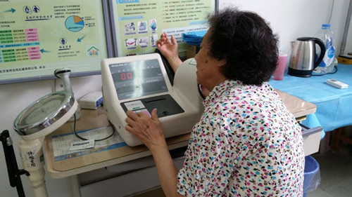 有一天,早上八点刚刚过,小屋一切就绪,我开始准备工作。就是这时,门口传来了说话的声音。我连忙起身迎接,只见一对年逾古稀的老两口站在门口。我连忙把他们请进小屋,准备为他们建档、监测。