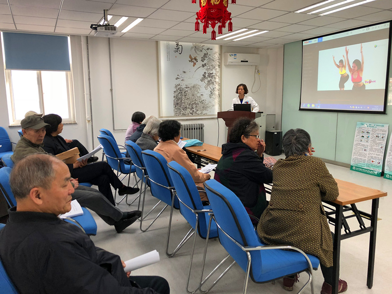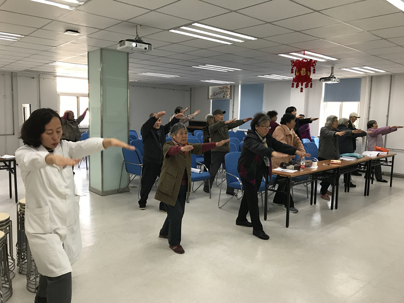 最后,我们为大家播放了《健骨操》的视频,并由医护人员带领大家一起学习、实践。做完操后,大家感觉身体出汗,四肢轻快,浑身舒畅。我们将视频发到糖尿病和高血压小组的微信群里,作为一项运动作业,留给大家在家练习。