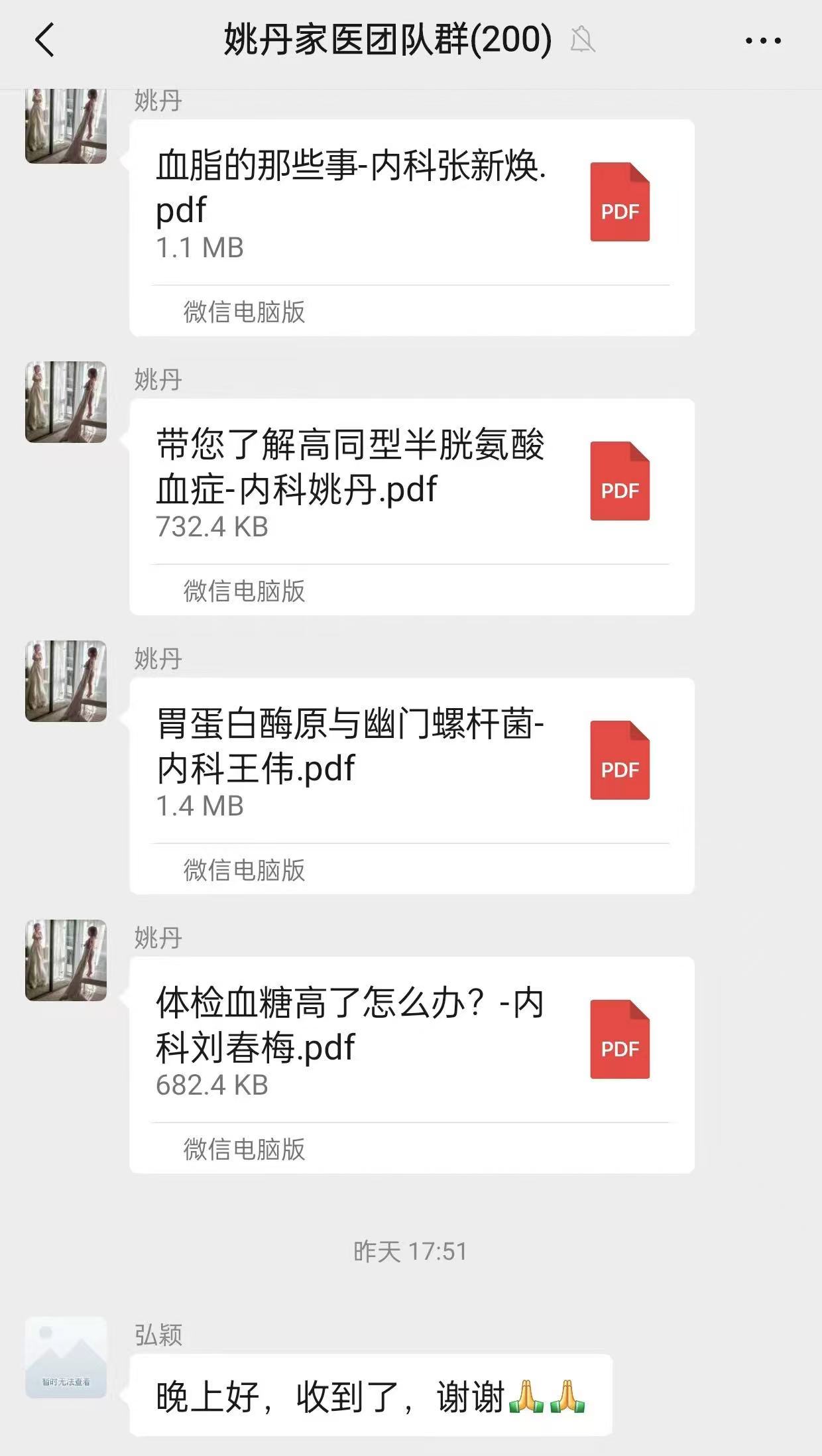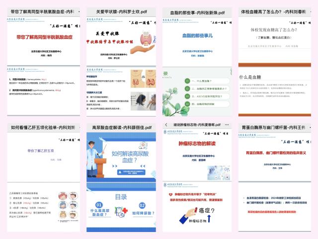 本项目由内科所有医生参与,制作了高同型半胱氨酸血症、血脂、血糖、肿瘤标志物、乙肝五项、胃蛋白酶原检测以及高尿酸血症、甲状腺疾病等主题的系列课件,通过家医团队群推送到居民手中,通俗易懂的文字、精美的配图,得到了居民的认可。这种方式方便居民随时阅读、便于保存,对一些有数字指标的内容,居民也可以“对号入座”,自我检视、加强自我管理,充分调动居民做自己健康第一责任人的意识。