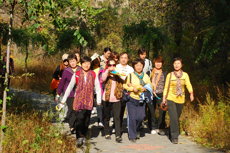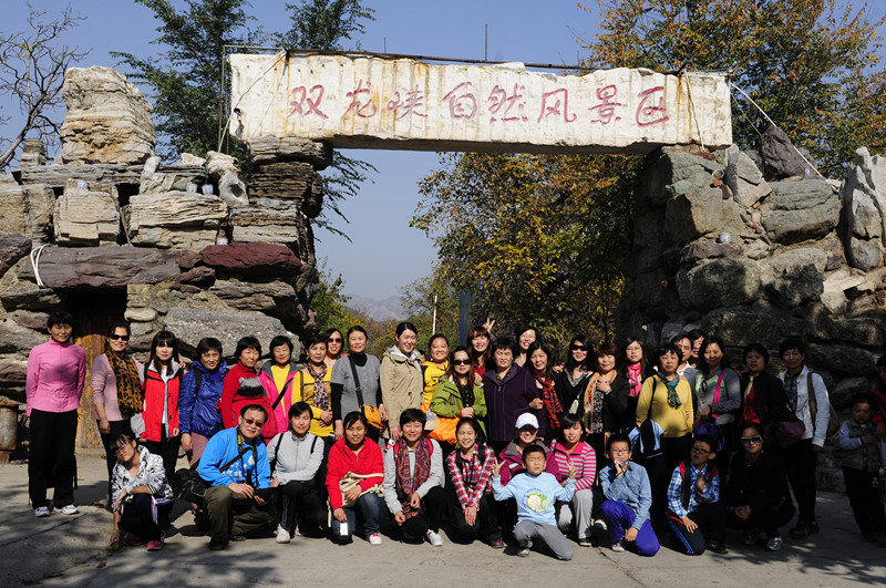 下午2点左右,大家在导游的带领下到达了被喻为“京西小九寨”的双龙峡自然风景区。群山红遍,层林尽染,着实令人心旷神怡,犹如仙境。大伙结伴走过玉龙湖、清幽湖、坐听双琴、仙女湾、第一瀑布,每到一个景点,大家举着照相机相互留影。一路上,我们一边谈笑一边相互提醒着“小心脚下”,不时有人伸手搀扶对方,这种相互交流、爱护一直在不经意间悄悄进行,使人心情轻松舒畅。