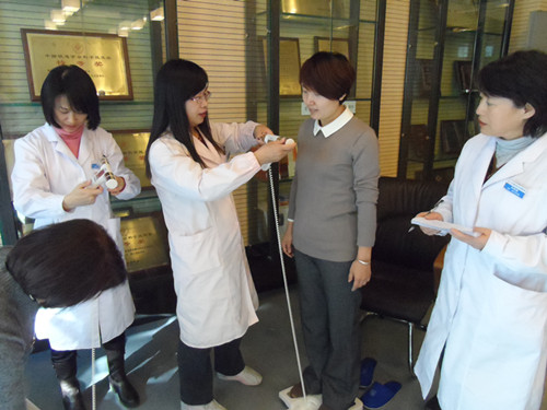 当天中午,高娅丽、刘红军、刘博、许白桦、肖笛等医生怀着为我校教职工当好健康守门人的使命感,牺牲了自己的午休时间,主动上门来到土建学院。该院的相关领导同志热情的接待了我们,听闻老太阳集团tcy8722网站的医生主动为大家上门服务,大家纷纷围过来。我们热情地为教职工测量了体脂指数、BMI、血压等健康指标,仔细核查大家的体检报告,针对大家身体状况提出个体化且可行性高的干预意见,像叮嘱自己的亲人一样告诫大家戒除不良生活方式,积极做好自我防病干预措施。