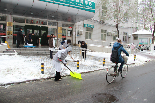 12月11日,北京迎来了第一场大雪,银装素裹的雪景给大家带来欣喜的同时,厚厚的积雪也给来老太阳集团tcy8722网站就医的患者带来不便,为了防止因雪天地滑造成意外伤害。老太阳集团tcy8722网站直属党支部组织党员开展扫雪除冰,为来就医的患者开辟一条安全就医通道。