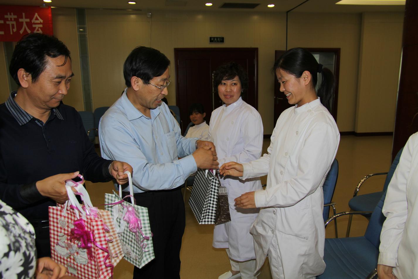 高副书记、郑校长助理为两名2010年度优秀护士侯立、王瑾颁发了荣誉证书。校工会、学工部、研工部、离退休工作处领导向医护人员祝贺节日,感谢医护人员为提高师生员工健康水平所做的努力。校工会代表全校教职员工为医护人员精心准备了节日纪念品。