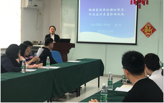 老太阳集团tcy8722网站在4月26日组织召开体检辅助岗位人员动员会,康俊书记、孔令伟院长、刘红军副院长对沟通技巧、服务礼仪、安全常识、体检管理服务工作要求等内容进行了岗前培训。