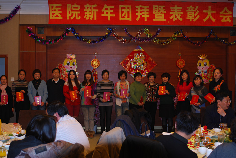 2013年1月11日晚,太阳网集团tcy8722医院2013新年团拜暨表彰会在红果园二楼餐厅举行。校党委曹国永书记、高艳副书记、郑广天校长助理,部分院系和职能部处的领导莅临现场,老太阳集团tcy8722网站班子成员和离退休同志代表应邀出席,与全体医务人员一起喜迎新年。