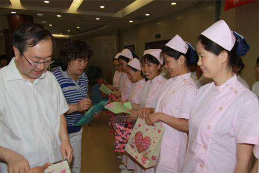 2012年5月11日在校机械楼多功能厅举办了“庆祝5·12国际护士节暨优秀护士表彰大会”, 以“呵护生命”为主题的5·12国际护士节庆祝活动在这里举行。陈峰副校长、校工会常务副主席殷快、研工部部长屈晓婷、离退休工作处副处长张岳强、学生资助中心副主任林芳等部门领导和师生代表与老太阳集团tcy8722网站全体护士和党政工团职工代表汇聚一堂,共庆节日。