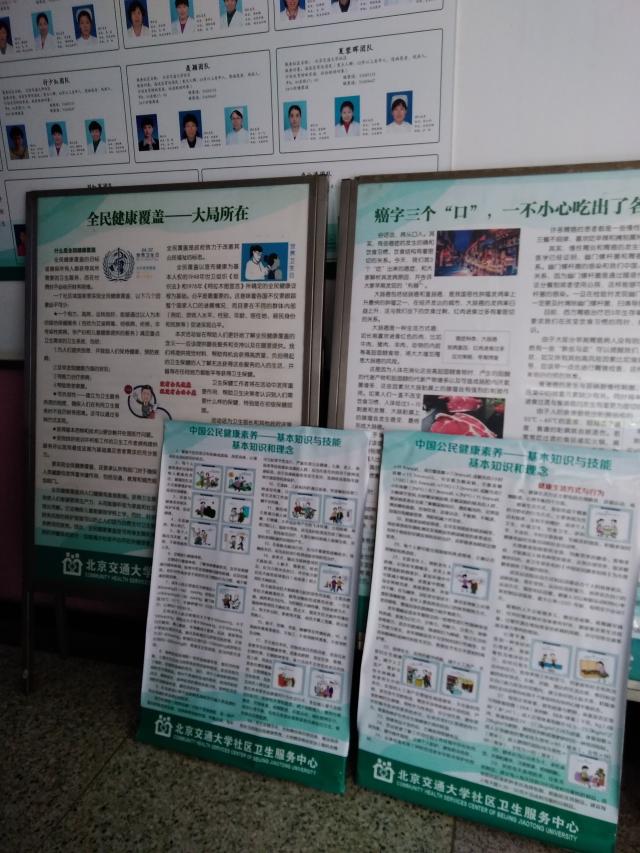 “维护人人健康,迈向全面小康”,就是要让健康服务覆盖到每个人、每个地方。北京交通大学社区卫生服务中心响应号召,从4月3日起在社区开展多种形式的健康宣教活动。活动期间,中心在门诊的LED显示屏上24小时滚动播放“世界卫生日主题”,并制作展板,宣传全民健康覆盖的含义和国家关于医疗卫生方面的惠民政策,普及健康知识,让大家熟知“中国公民健康素养66条”。同时,在门诊摆放宣传折页3种100余份,告诉大家日常生活应重视合理膳食、科学健身、健康生活。