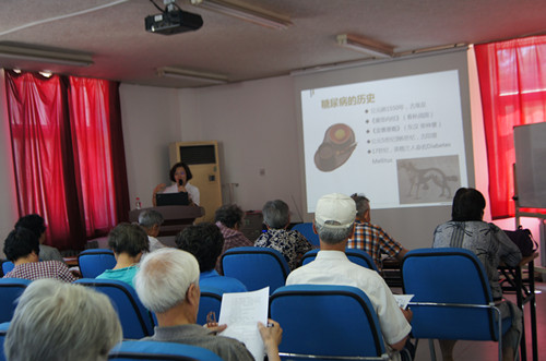 这次宣教由卢云涛主任医师主讲,她深入浅出地讲解了糖尿病的历史,从公元前1550年古埃及的贵族的吃得好、吃得多反而消瘦、多饮、多尿并且尿甜的故事讲起,到近百年来全世界科学家对糖尿病的探索,再到1921年Banting医生和Best医生提取动物胰岛素,以及目前在糖尿病治疗中常用和最新研究出的药物,对糖尿病的前世今生进行了生动的描述,她还讲解了糖尿病常见的症状、并发症、治疗和预防方法以及某些普遍存在的一些误区,对病人而言不是血糖越低获益越大而是治疗方案和目标的个体化,最后提出了合理的养生和保健建议,呼吁大家要从自我做起,做自己的保健医生,培养健康的生活方式,进行适度的体育运动,保持良好的心理状态。只有在日常生活中进行严格的自我管理,才能有效预防和控制慢性疾病对人体的伤害。讲座结束后,大家还向卢大夫请教了一些相关健康问题,并交流了保健心得。
