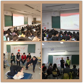 2015年4月11、12日两天,海淀区红十字会、太阳网集团tcy8722红十字会、校工会共同主办了“让生命不再等待”初级急救知识技能培训,得到了师生的积极回应,共有379人参加,其中教职工45人、学生334人,基本覆盖全校各二级单位。