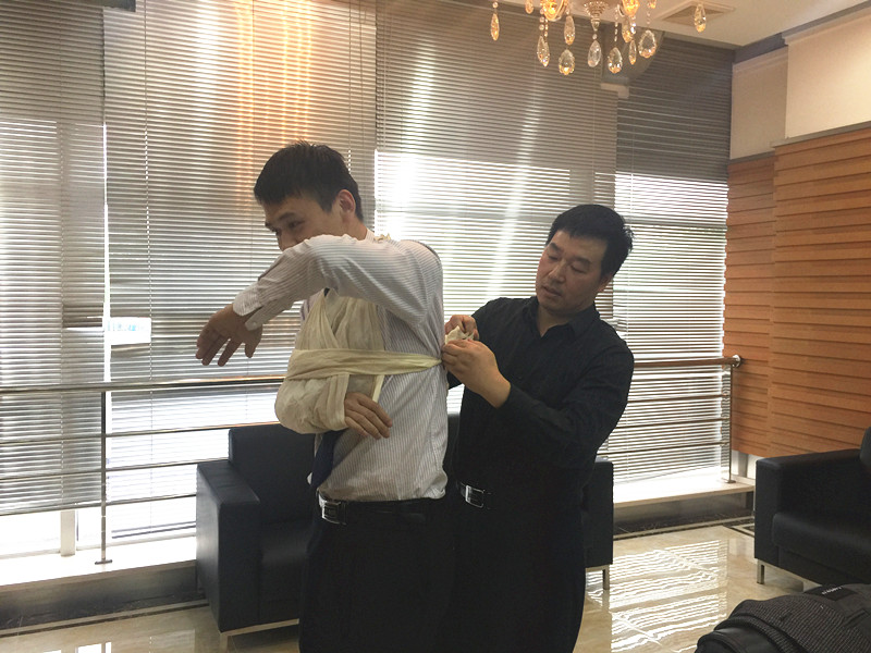此次培训由医院外科副主任医师刘延和内科主任医师卢云涛作为师资,培训内容以实操为主,向公司的员工讲解并示范了心肺复苏、止血、包扎等创伤急救技术及突发事件时的救护。每位员工还在两位医师的指导下进行了心肺复苏和止血、包扎、固定等操作。