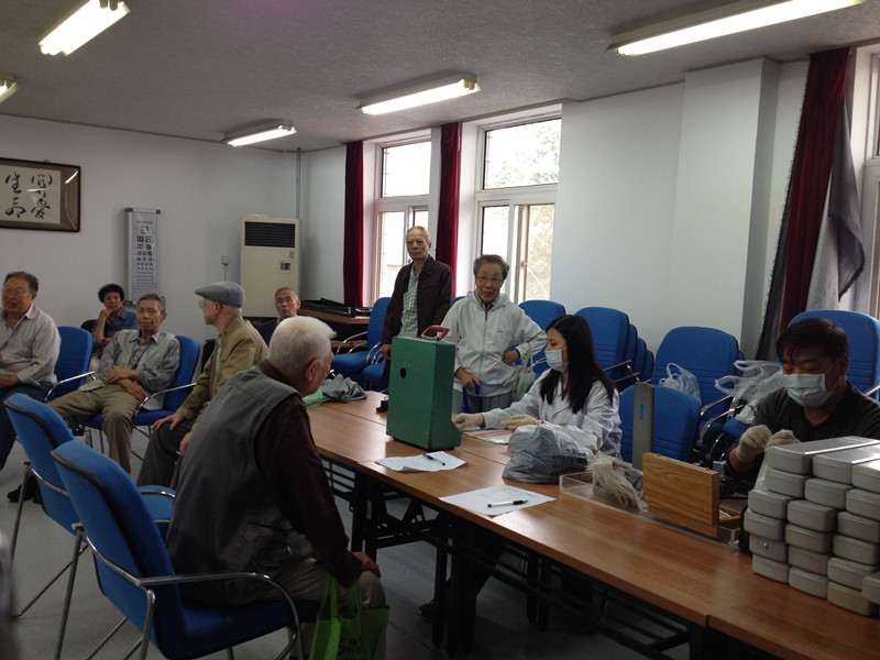 2014年9月23日上午在老太阳集团tcy8722网站门诊楼三层会议室,老太阳集团tcy8722网站护理部工作人员及海淀区计量检测所技术人员为社区居民提供检测、修理血压计服务,同时讲解血压计正确使用方法及注意事项。期间老人们拿着自家的血压计欢快地相互打着招呼,交流着养生经验。